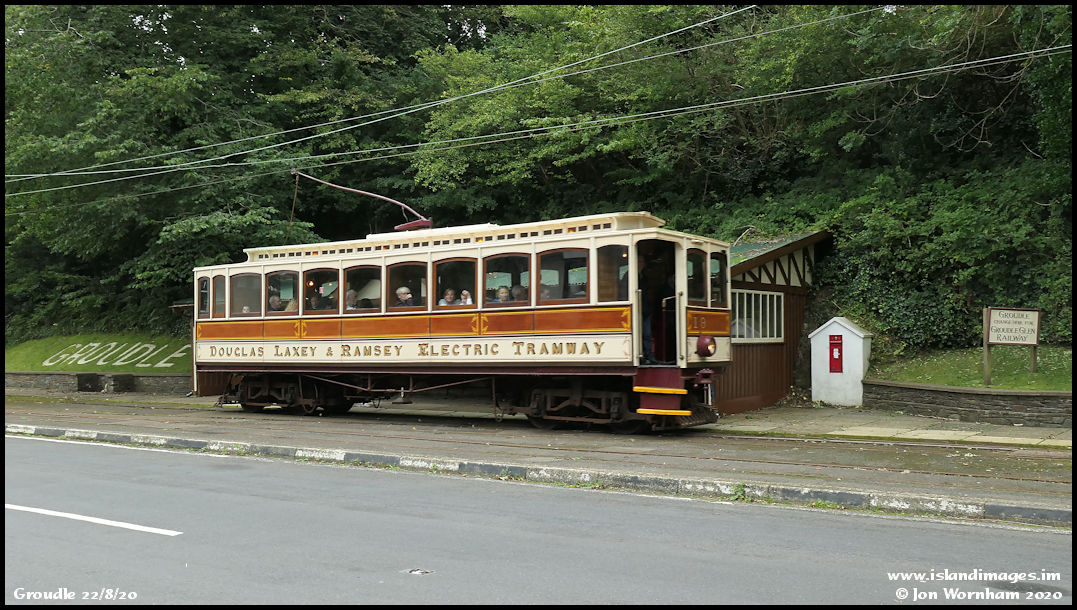 Car No 19 continues through Groudle and is entering the first of two single line working sections currently on the MER due to track works. Single line working uses the 'Staff & Ticket' block working system.