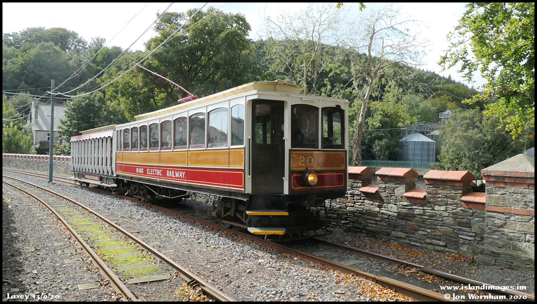 'Winter Saloon' No 20 crossing the viaduct over Glen Roy before entering Laxey Station.
