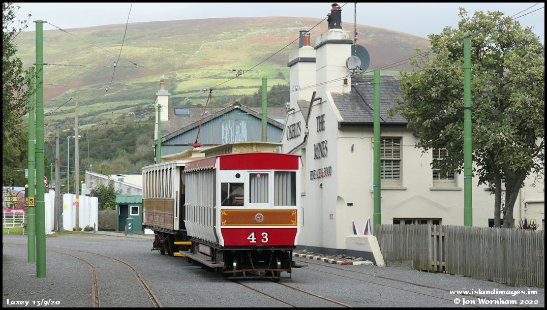 Car No 20 heads off for Ramsey with trailer No 43. Both vehicles were delivered new to the tramway in 1899 for the opening of the line from Laxey to Ramsey.