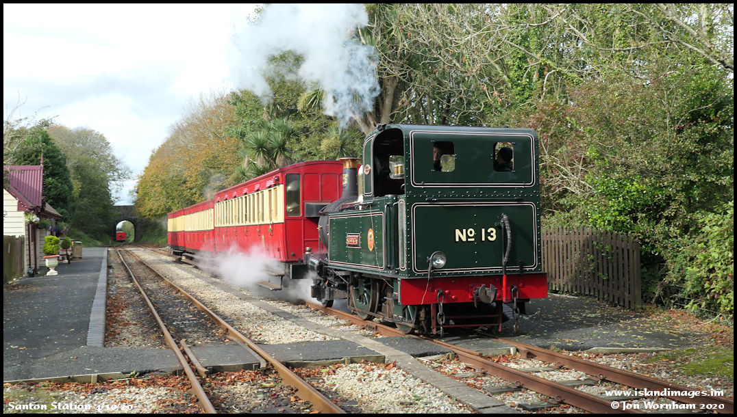 With the single line Staffs exchanged between trains, 'Kissack' sets off towards Douglas as the last coach of the Dining Car Train disappears under the road bridge.