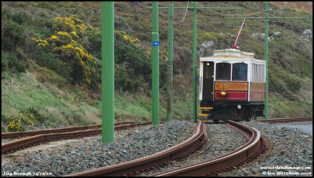 MER Car No 20 heading south between Howstrake and Onchan. Note the use of street tramway type rail here, ordered for the Douglas Bay Horse Tramway, but then surplus to requirements.
