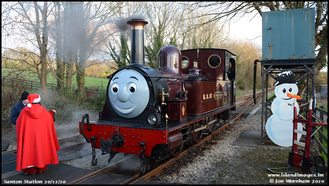 One of Santa's team (is it Mrs Claus?) discussing matters with the train crew at Santon.