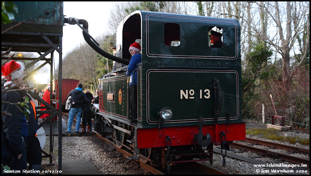 Max tops up the water tanks on 'Kissack' (under supervision!) while passengers pose for photos in front. It's nice touch that the loco's are left here for these photo opportunities until the train is ready to depart.