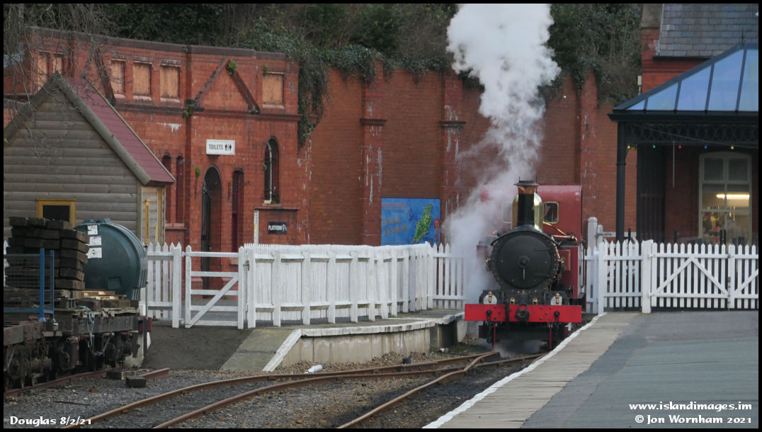 IOMR No 4 'Loch' in the headshunt at Douglas after stabling the carriages picked up from Port Erin in the carriage shed.