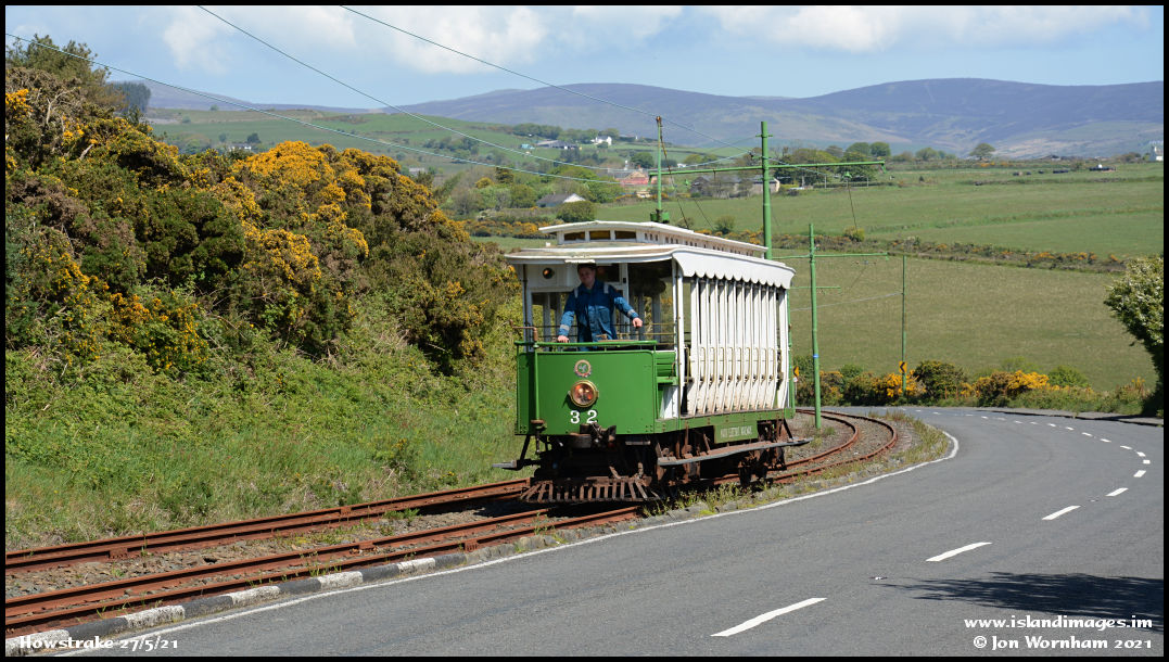 Out on the line, open crossbech Car No 32 was on a 'drying out' run, pictured here climbing away from Groudle towards Howstrake.