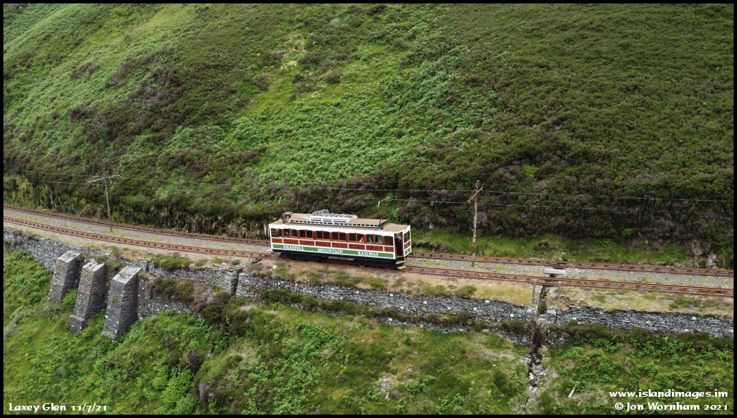 SMR Car No 4 passes by. There is considerable stonework and buttressing on this section of the line.
