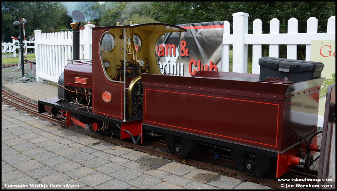 'Alice' standing in the station area, she is modeled on one of the 'Quarry Hunslets' that were popular in the slate quarries of North Wales, most of which have survived into preservation.