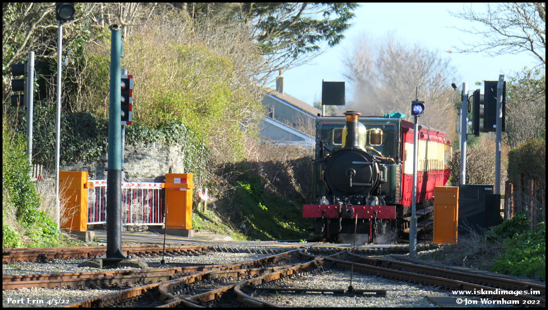 After lunch and a stroll around, we've arrived back at the station in time to see No 13 'Kissack' arrive with the 13:50 from Douglas.