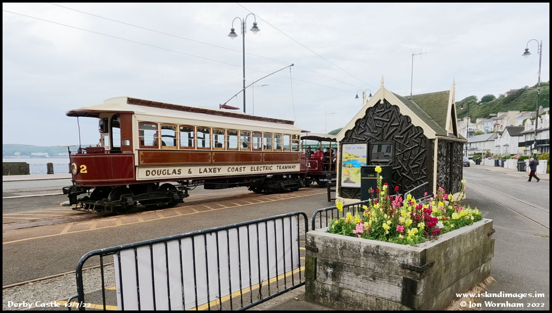 Manx Electric Car No 2 is paired today with trailer 51 both delivered in 1893 for the initial opening of the line from Douglas to Groudle.