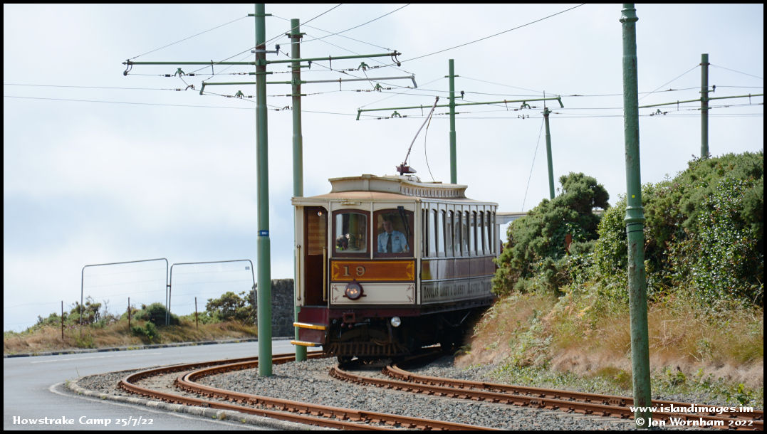 Following the coast road to Groudle, I caught up with Car No 19 pictured negotiating the tight curve at Howstrake Camp, on a special working from Derby Castle to Groudle and back.