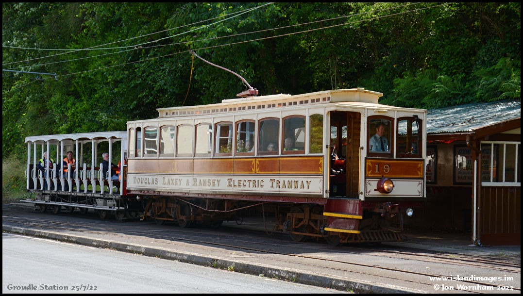 Car No 19 comes to a halt at Groudle Station, where it will run round the trailer and head back to Derby Castle.