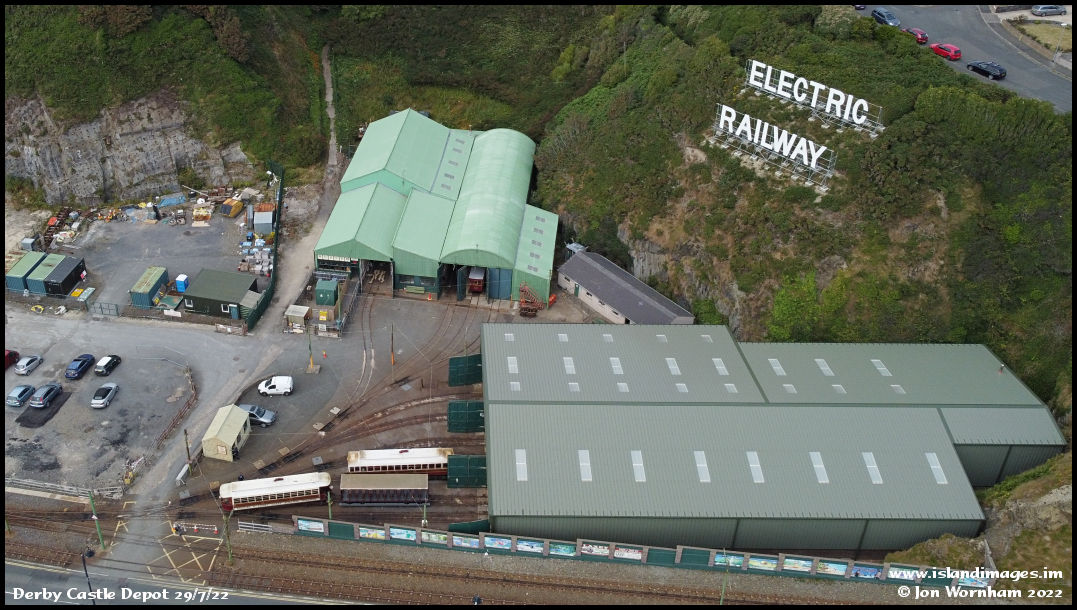 A semi vertical view of the Manx Electric Railway depot and workshops. There used to be two other depots, but the Ramsey one was demolished a few years ago. The Laxey one was rebuilt and still used.