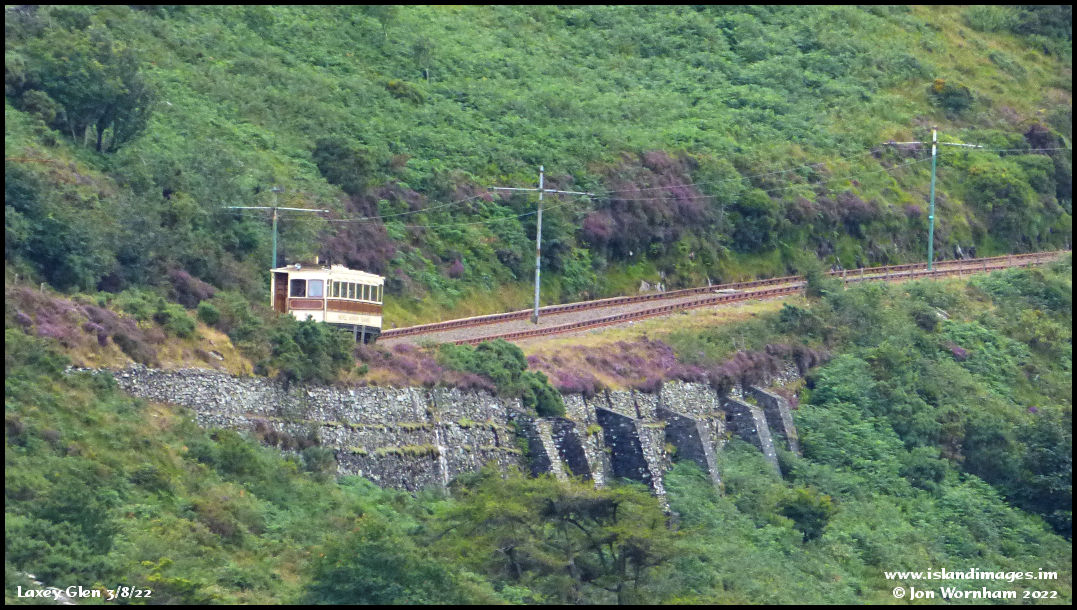 Car No 5 is pictured here on the ascent to Bungalow although at this particular point, Lhergy Veg, the line actually descends for a short distance before continuing the climb.