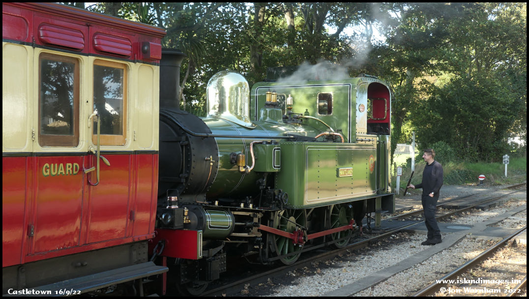 A bit of baton twirling practise with the single line staff? Waiting for the train to arrive from Douglas!