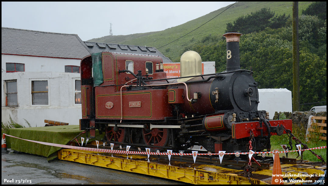 'Fenella' at Peel with Moore's taditional Smokery behind.