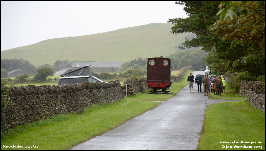 'Caledonia' at Knoackaloe. A huge internment camp was constructed here in WW1, on either side of the roadway seen here. A steeply graded branch line was constructed from The Raggatt and 'Caledonia' was used to push supply trains up to the camp.