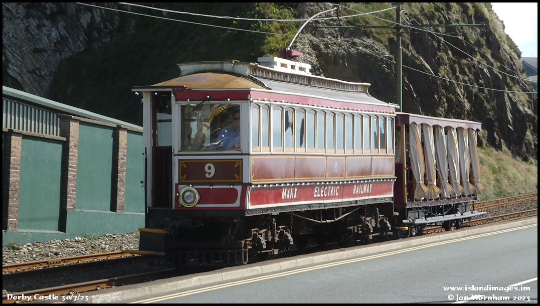 First arrival from the north is illuminated Car No 9, together with one of the more unusual trailers.