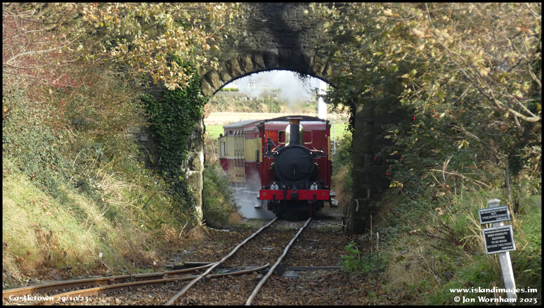With 'Maitland' stationary in the loop, 'Loch' is signalled to come ahead and is pictured about to pass under the stone bridge at the east end of Castletown station.