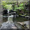 river bed to a pool and waterfall.
