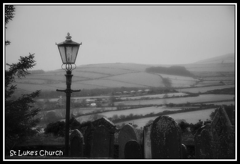 Looking across the churchyard towards West Baldwin