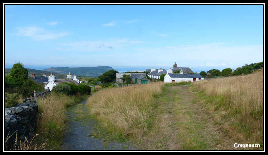 Entering Cregneash village with The Calf visible beyond