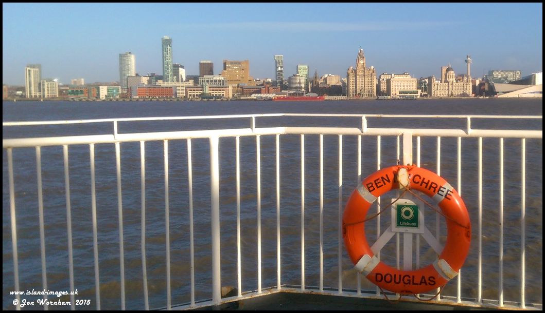 Liverpool city skyline from the deck of the 'Ben-my-Chree