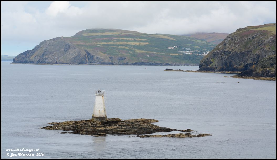 The Thousla Rock uncovered at a lower tide with Bradda Head behind