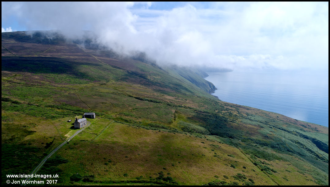 Eary Cushlin, with the light onshore breeze pushing cloud up the slopes of Cronk ny Arrey Laa