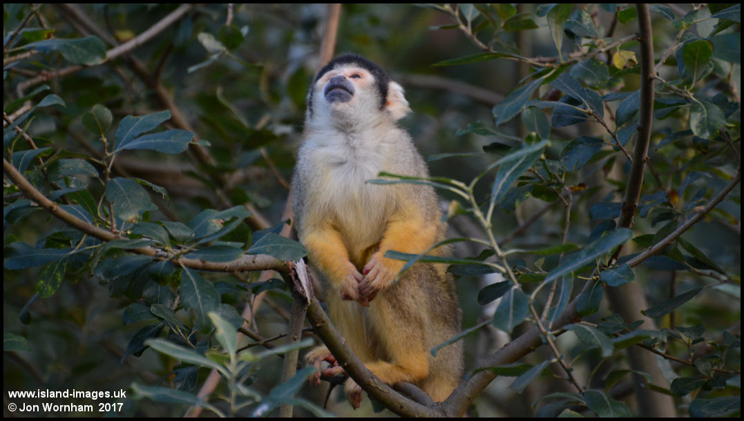 A Squirrel Monkey high up in a tree. You can usually hear them chattering to each other before you actually spot them.