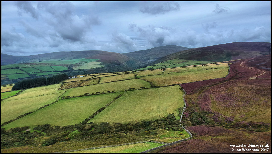 The boundary between fields and moorland above Laxey Glen
