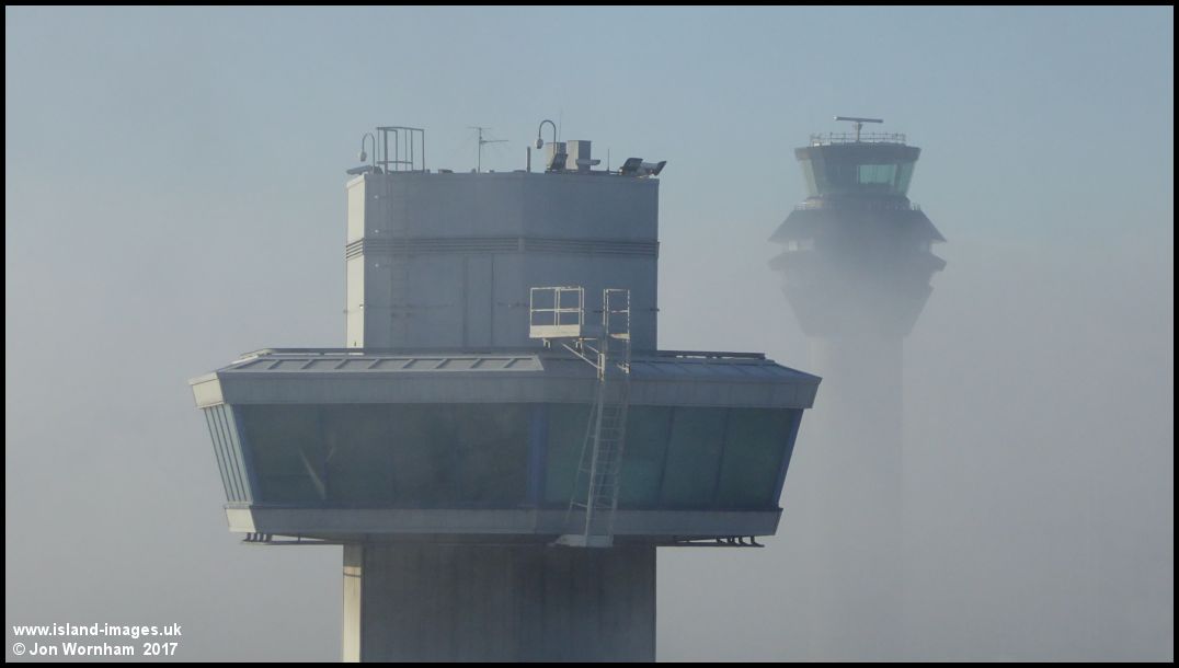 Back in the cold and foggy UK - Towers at Manchester Airport with the temperature barely above freezing!