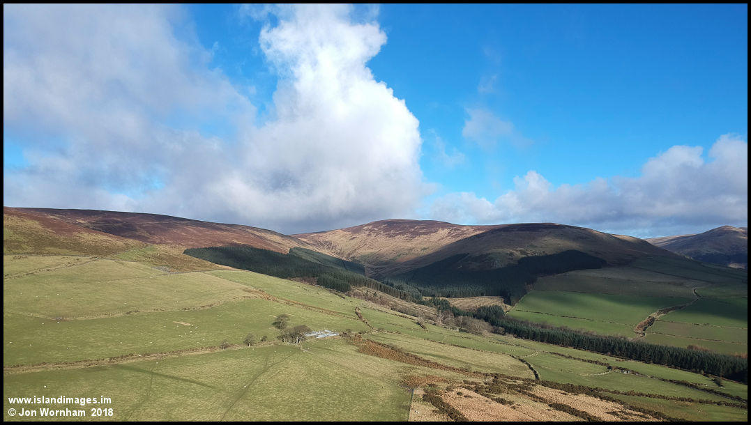 View from over Cronk Breck to Colden. There's another tholtan in this shot but it's quite hard to see, look to the right of the sheepfolds in the lower centre, it's called Eairy-ne-Suiy on the map.