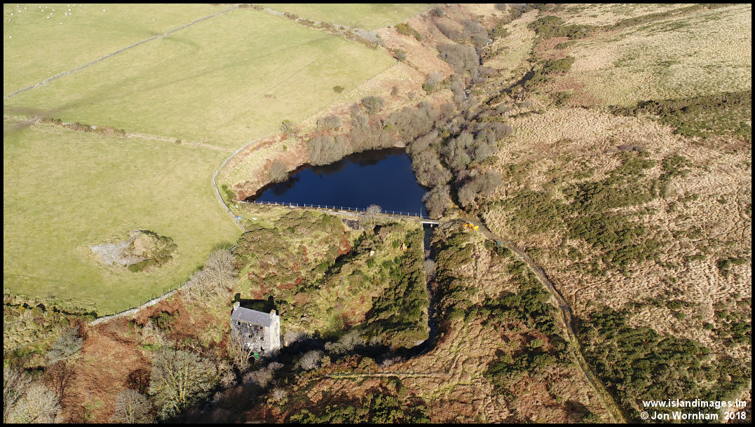 A higher altitude view of the Ballacregga Reservoir and North Shaft winding house.