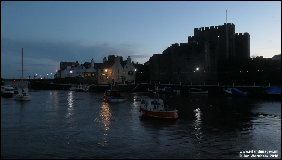 Carrying on to Castletown, this is Castle Rushen at dusk from across the harbour.