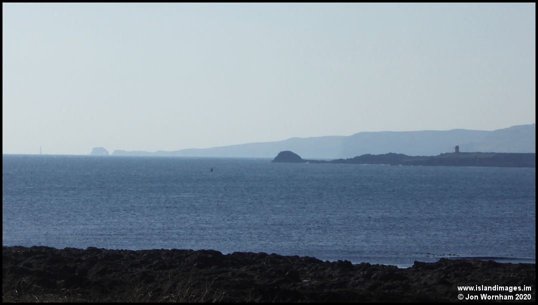 A sunny but hazy day reduced the distant views a little, this is looking across Castletown Bay, past Scarlett to the Calf of Man and Chicken Rock lighthouse.