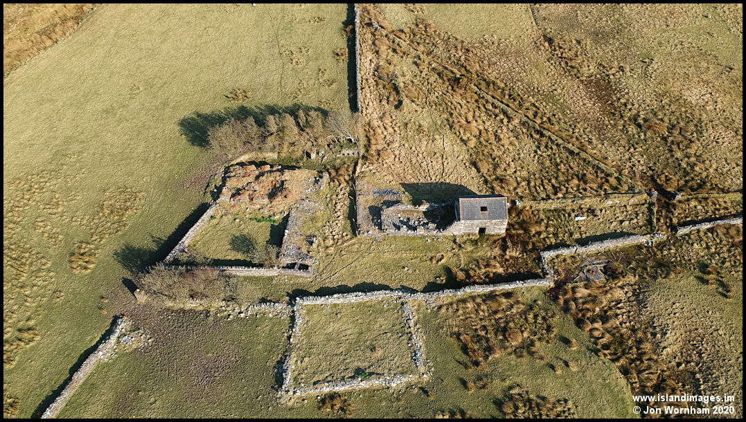 A semi vertical view of Claghbane, showing the overall layout of the farm.