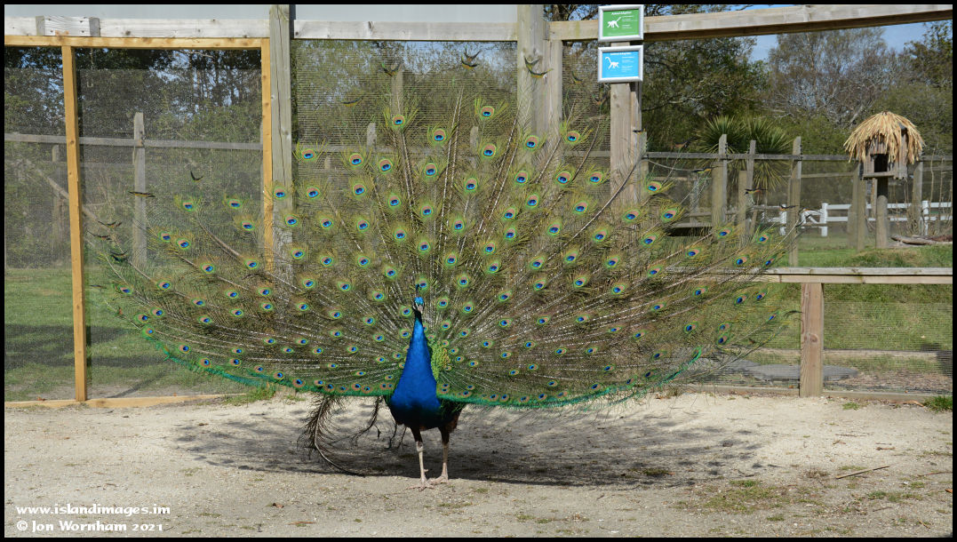 A good display by one of the Peacocks that roam freely around the park, although a few feathers need some attention.