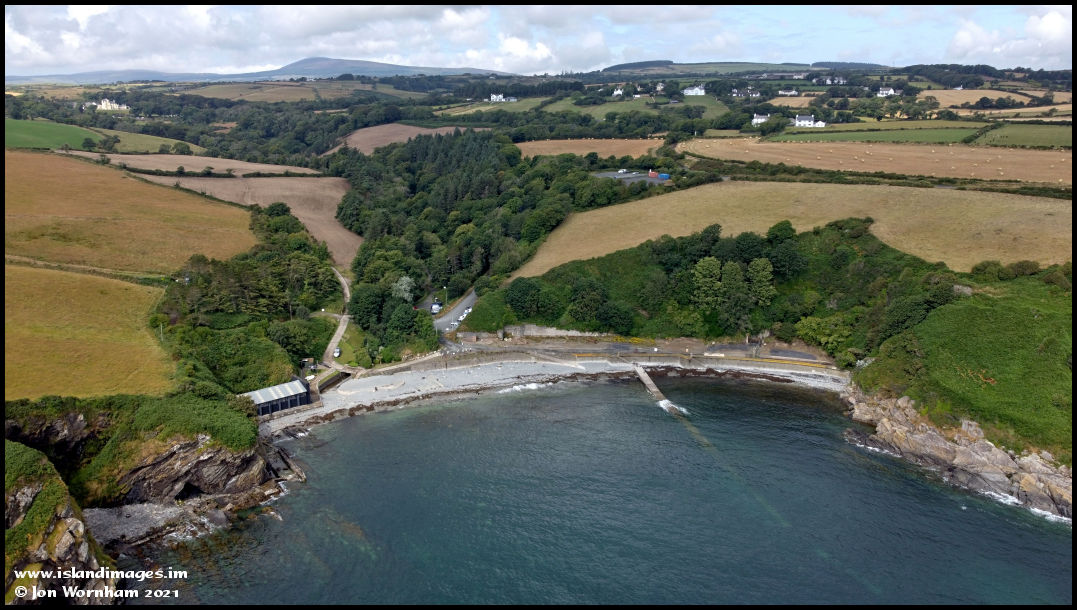 A higher altitude view of the beach at Port Soderick, with South Barrule in the distance.