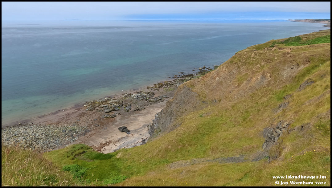 Looking down from the clifftops to the sea, only around 160 ft left to go, but I need to fight my way through the bracken first. The smudge on the horizon is the Mull of Galloway in Scotland.