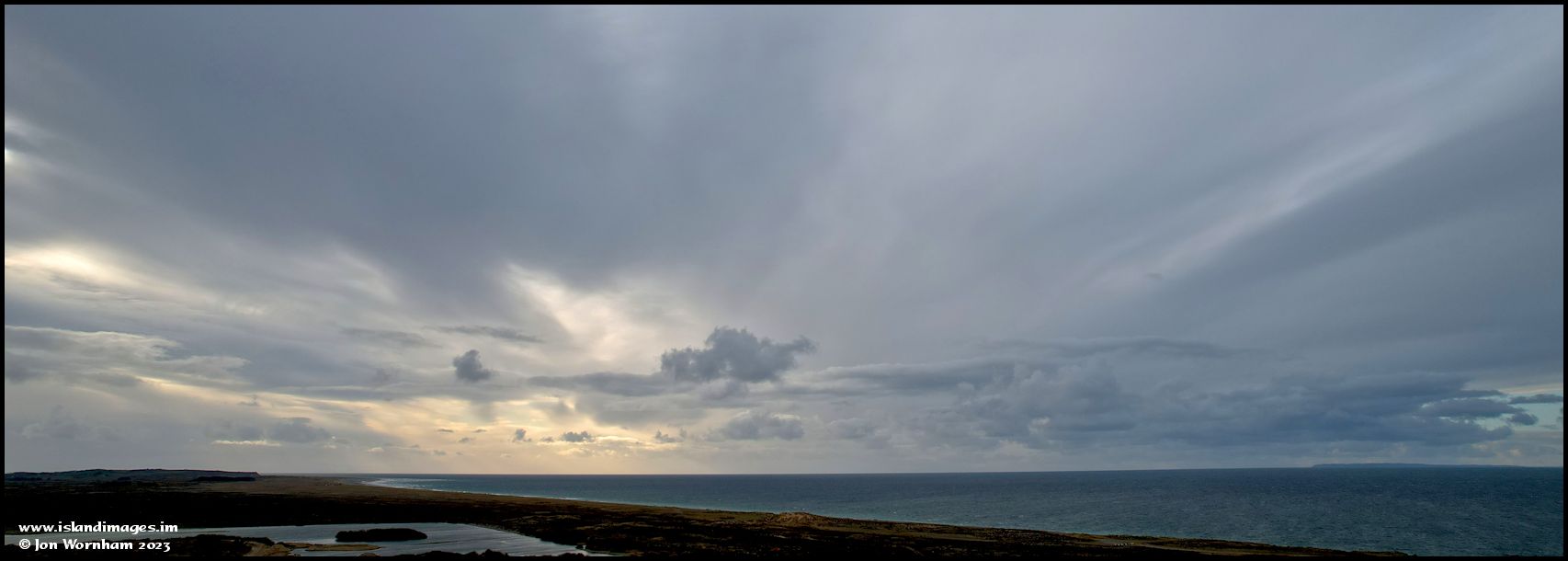 Big sky over the old gravel workings at the Point of Ayre, with the Mull of Galloway visible on the horizon to the right of the picture.