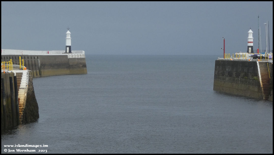 Looking out through the harbour entrance breakwaters.