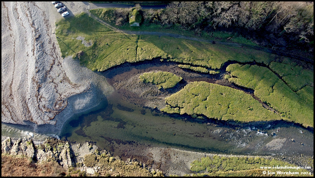 A vertical view of the clear waters in the lagoon. As the tide rises the sea water will flood into the lagoon and fill the various channels.
