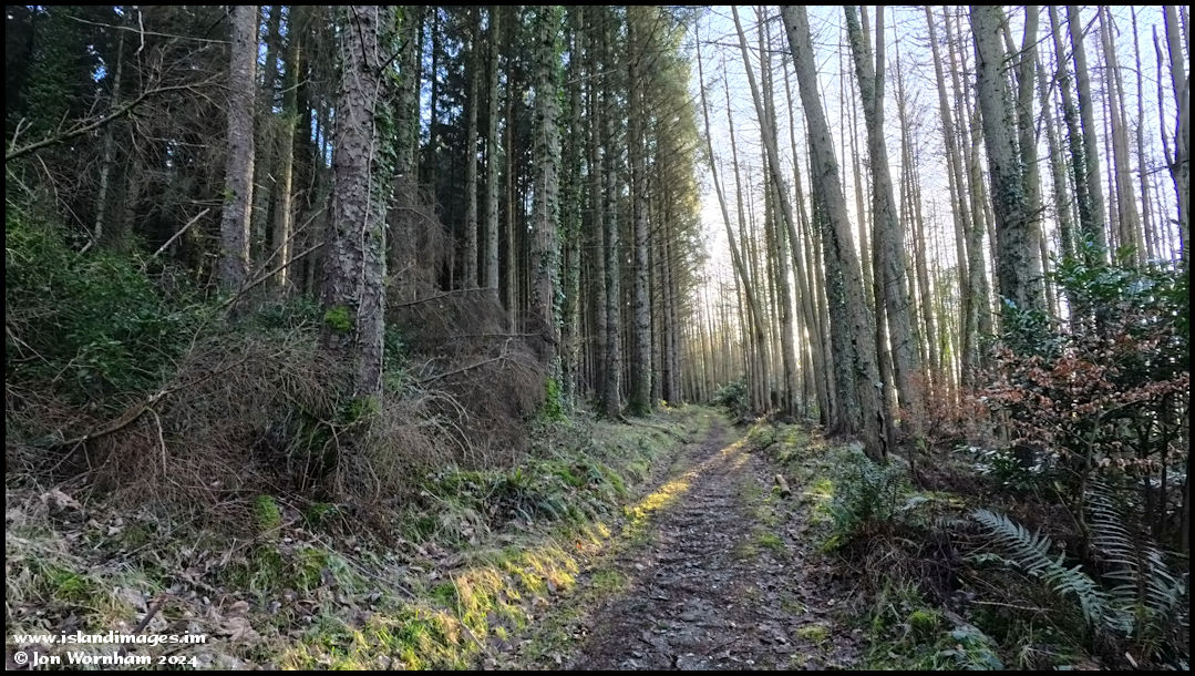 Continuing the climb upwards, with sunlight filtering through the plantation trees.