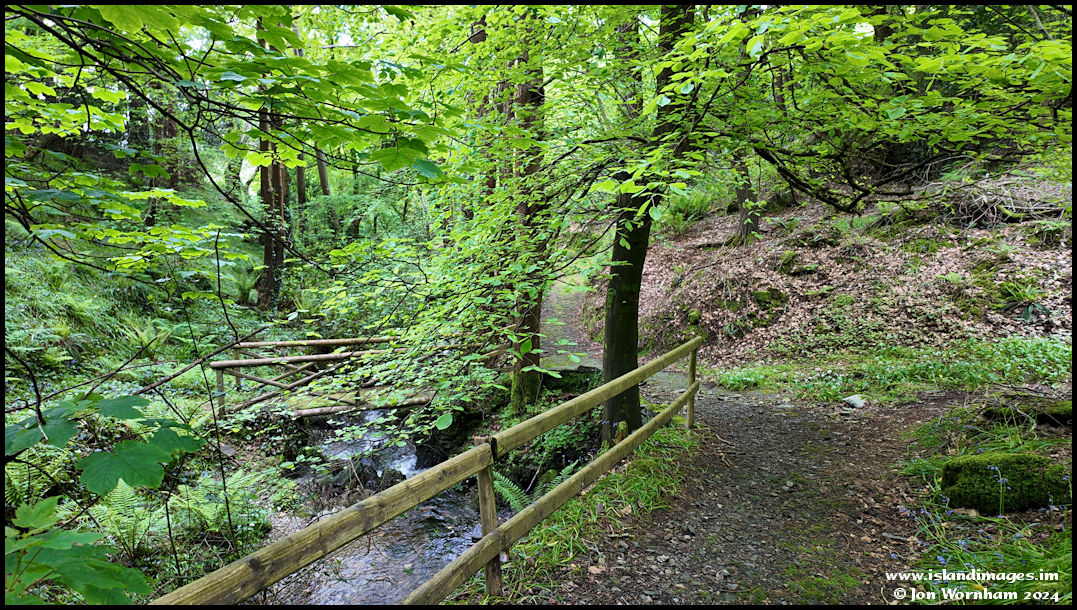 Carrying on down the glen, with another rustic bridge. Just to the right is the path to 'Dirk Haiterick's Cave.