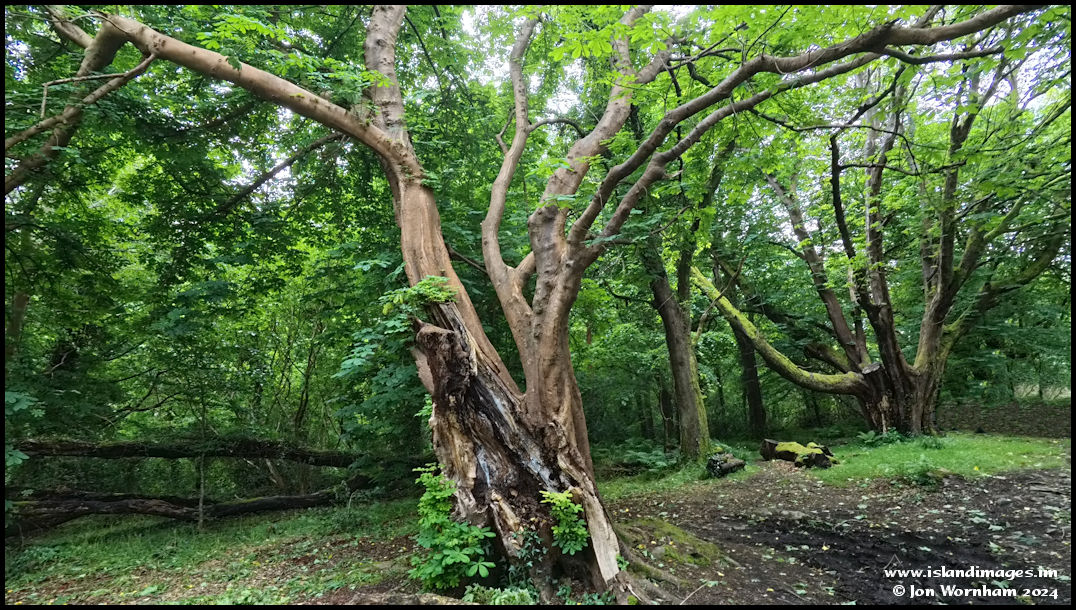 This Horse Chestnut tree looks very old with the main trunk mostly rotting away. However there are still lots of leaves on it and new growths sprouting from the base of the trunk.