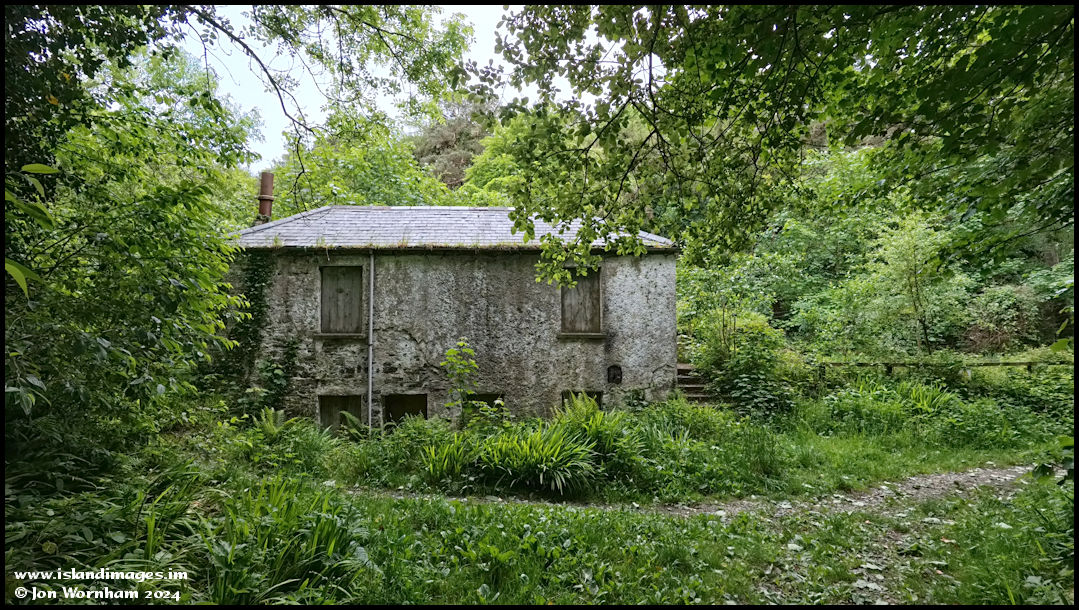 I used to think that this building must be the remains of an old water powered mill, but in fact it was a mine working in the glen. It had a large water wheel to power pumps and machinery that once towered well above the building