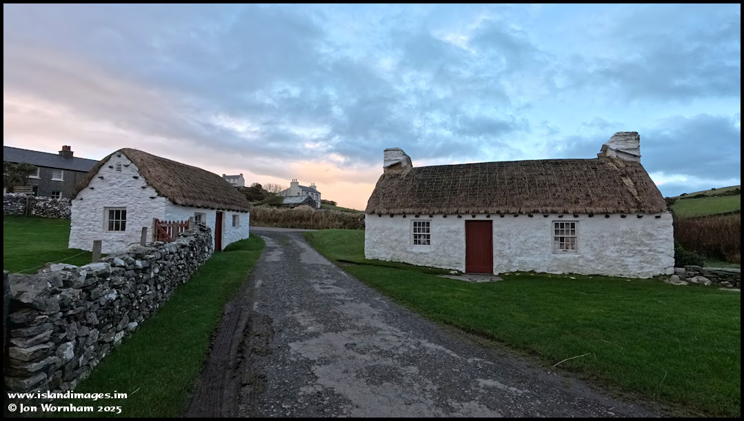The cottage on the right is preserved as a typical Manx crofter's cottage, with two floors inside, including a small bedroom under the thathed roof. The one on the left is a workshop.