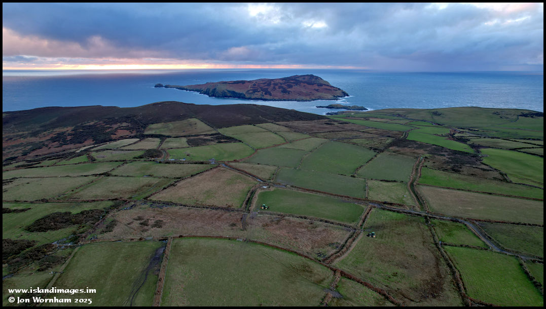 Turning the camera around to look across the patchwork fields and down to the Calf of Man.