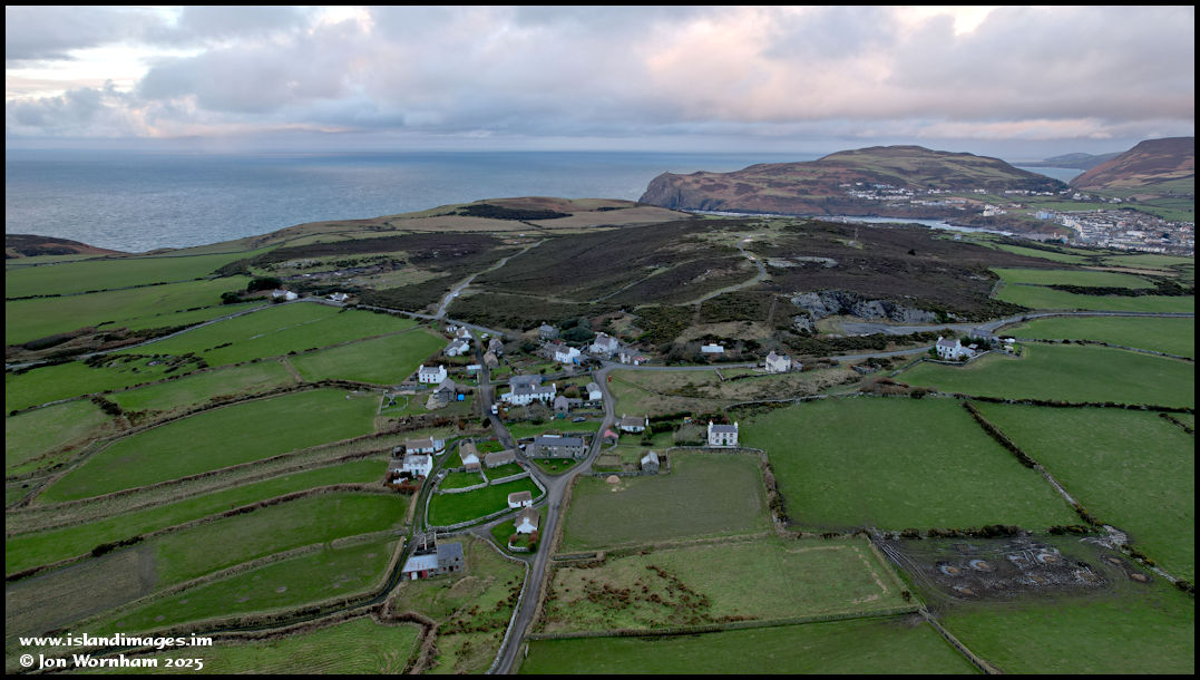 Climbing higher and looking back across the village and Mull Hill with Port Erin and Bradda Head in the distance.