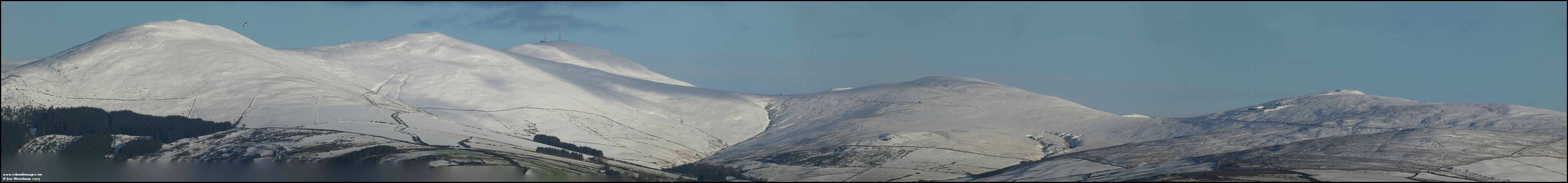 Using the zoom for this stitched panorama encompassing Carraghan, Beinn-y-Phott, Snaefell and Slieau Lhost.